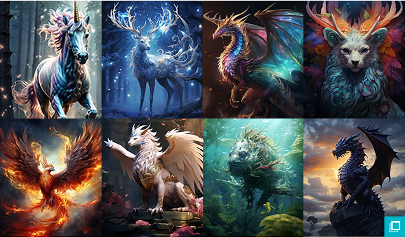 하지만 여기서 궁금증이 생깁니다. 이렇게 멋진 상상 속 동물 이미지들은 어떻게 생성되었을까요? 실제로 이 동물들은 AI 알고리즘과 학습 데이터를 통해 생성되었으며, 대상의 특징과, 스타일 등이 창조적으로 조합되었습니다.