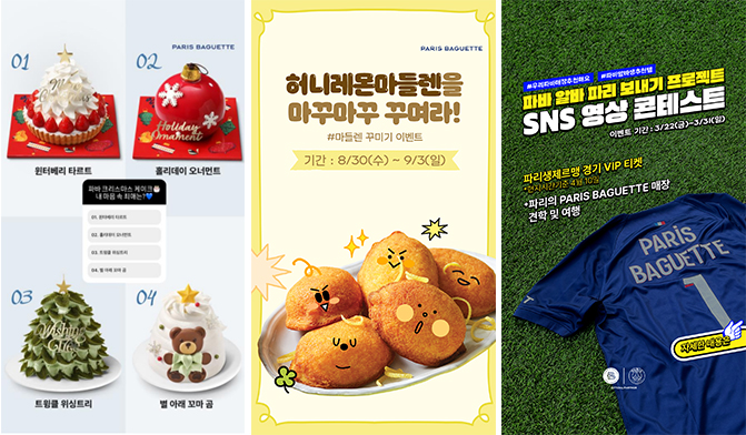 이번 프로젝트는 빵/케이크/커피 등 제품의 정보 전달뿐만 아니라 소비자와의 소통 콘텐츠 기획 등 다양한 활동을 전개하고 있습니다.