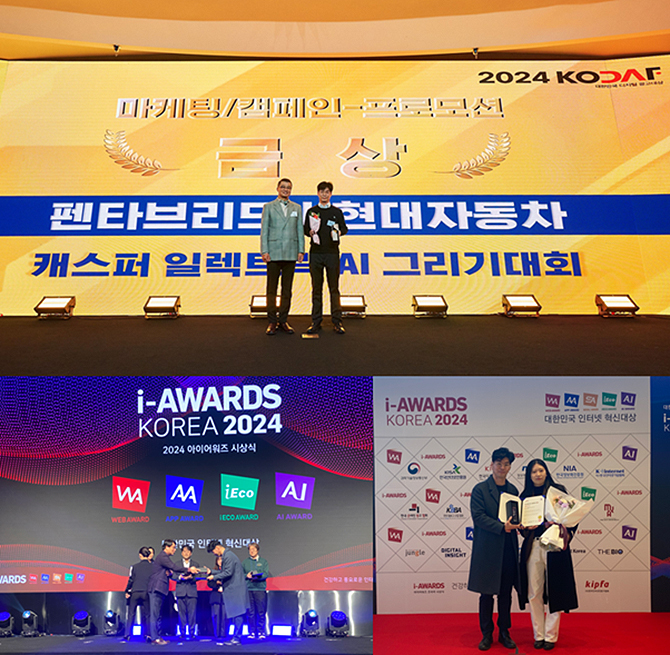 한국디지털광고협회 주관, 문화체육관광부 후원으로 열리는 국내 최대 규모 디지털 광고 시상식으로 매년 혁신적인 디지털 마케팅 사례를 발굴해 시상하는 ‘2024 대한민국 디지털광고대상’의 마케팅/캠페인 부문에서 펜타브리드의 ‘캐스퍼 일렉트릭 AI 그리기 대회’가 금상을 수상하였습니다.