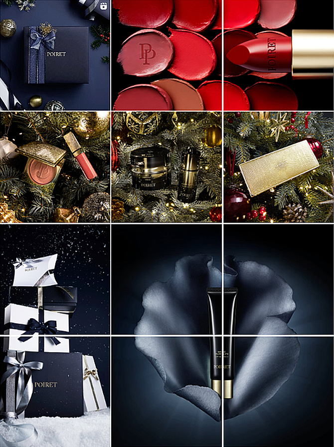 Poiret in the Holiday mood ‘홀리데이 속 뽀아레’는 연말 시즌을 고려한 컨셉으로 각 제품/라인별 소구 포인트를 강조하여 컬러감 있는 텍스처 연출하였습니다. 뽀아레 홀리데이 무드를 연출하고 오너먼트를 풍성하게 하여 트리스타일로 표현했고 립의 매트한 텍스쳐를 강조했습니다.
