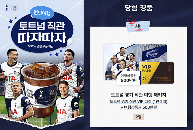 2등. 토트넘 경기 VIP 티켓 1인 2매 (2명)