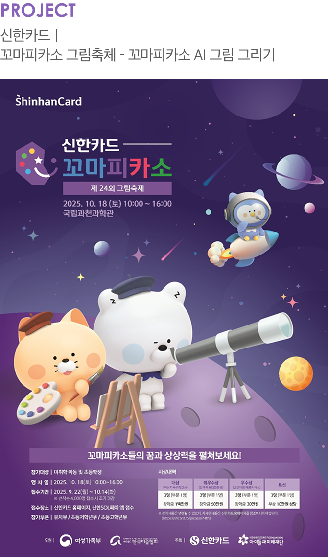 AI가 감성을 전할 수 있는 시대가 열리고 있습니다. 이번 협업은 기술이 단순히 이미지를 만드는 것을 넘어, 사람들의 마음을 움직이고 동심을 불러일으킬 수 있음을 보여주었습니다. 이러한 가능성을 함께 나눈 커뮤니크와 신한카드에 감사드리며, 제24회 꼬마피카소 그림축제가 아이들과 가족 모두에게 뜻깊은 시간이 되기를 기원합니다.
