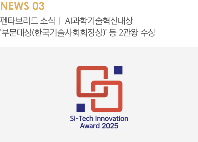 펜타브리드가 한국정보과학진흥협회와 전자신문이 주최하고 디지털 인사이트, 한국머신비전산업협회, 과학기술정보통신인증원이 공동 주관하는 ‘AI과학기술혁신대상 2025’에서 부문대상(한국기술사회회장상) 등 2관왕을 수상했다.