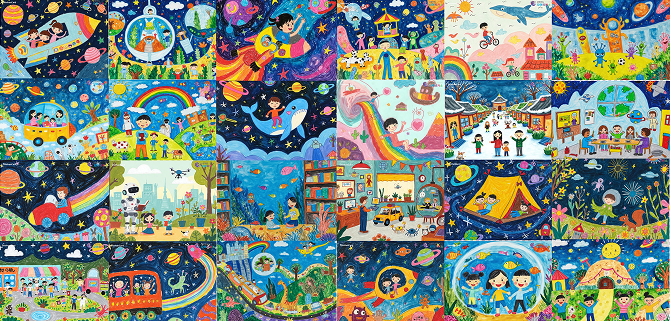 참가자는 온라인 페이지를 통해 그리고 싶은 내용을 입력하면 AI가 어린이가 그린 듯한 수채화 혹은 크레파스 스타일의 그림을 생성했다. 특히 AI가 어린이의 감성에 맞는 질감과 색감, 구도를 표현할 수 있도록 튜닝된 점, 프로젝트가 단순 AI 활용을 넘어 예술의 도구로 활용 할 수 있다는 가능성을 제시한 점이 높은 점수를 받았다.