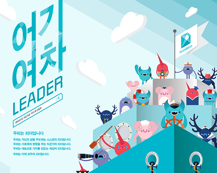 하지만 지난 14년간 몸집 불리기 성장에 집중하느라 철학과 비전이 모호해지기 시작해질 무렵, 업의 숙명이자 근본적인 고민거리인 ‘Why?’라는 물음에 직면할 수 밖에 없었던 것 같다. 우리는 이 일을 왜 하는가? 남의 이야기가 아닌 바로 우리 자신의 이야기를 주도적으로 리드하고 있는가? 회사의 비전처럼 우리가 하는 일을 통해 세상을 움직이는 영향력을 선물하고 있는가? 위와 같은 물음에 대한 답을 찾기 위해 수 개월 고민하고, 사내 설문을 통해 다양한 호칭 아이디어를 받기도 했다. 이 과정을 거쳐 기업으로서의 펜타브리드, 그리고 많은 직원들이 자아실현의 꿈과 함께 누군가에게 힘과 영감을 주는 크리에이터로서의 삶을 원한다는 공통점을 발견하게 된다. 이에 대내외적으로 우리는 모두 자기 삶을 주도하고자 하는 리더였고, 앞으로도 리더로 살아갈 것임을 공식 선언하기에 이르게 된다.