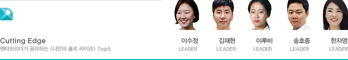 ‘지금 이 순간의 삶’을 지향하는 욜로(YOLO)가 다시 떠오르고 있다. 현재 없이 앞만 보면 달리는 삶이 결코 행복을 보장해 주지 않는다는 걸 많은 이들이 알아챈 까닭일까? 욜로족은 타인에게 인정받기 위한 삶을 과감히 포기하고 더 본질적인 가치에 도전한다. 이들은 자기다움의 발견과 자신을 둘러싼 모든 것들과의 관계 회복에 삶의 초점이 맞춰져 있다. 부와 명성의 축적, 내집 마련 등 물질적인 풍족함의 추구 보다는 일상의 매 순간을 지루함 없이 즐기며 파워풀한 삶을 창조해 나가고자 한다. 작은 행복과 성공들이 쌓이다 보면 미래는 지금보다 훨씬 더 멋지게 펼쳐질 거란 확신으로 사는 이들이기에. 펜타 내 눈에 띄는 욜로족 TOP5를 소개한다.