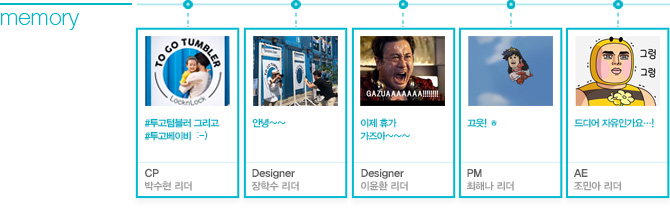 3개월 동안 락앤락 투고텀블러로 각자의 위치에서 매우X100 고생하신 TFT 리더님들 덕분에 성공적으로 마무리되었습니다. 오랜만에 현장의 긴장감을 느끼고, 온 오프라인 모든 콘텐츠의 디테일 최고치를 경험한 프로젝트였어요. 감사합니다!