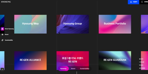 활용으로 실용성을 높였다. 메인 페이지의 토글 버튼이 대표적이다. 효성그룹