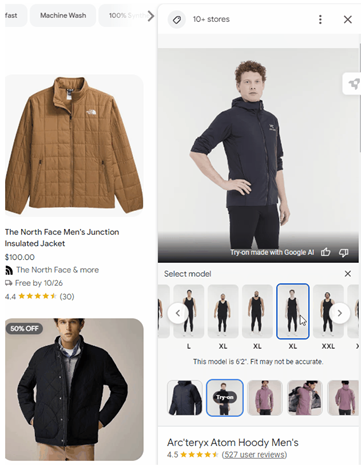 새로운 구글 쇼핑의 또다른 핵심은 ‘AI 생성 브리프 기능’입니다. 사용자가 특정 제품을 검색하면, 제미나이는 해당 기후에 적합한 자켓의 종류, 소재, 기능 등 주요 고려 사항을 포함한 브리프를 자동으로 생성하여 제공합니다. 제미나이는 이미지, 텍스트, 코드 등 다양한 형태의 정보를 이해하고 생성할 수 있는 AI 모델로, 사용자의 검색 의도를 정확히 파악하고 개인 맞춤형 상품 추천 및 정보 제공에 활용됩니다.