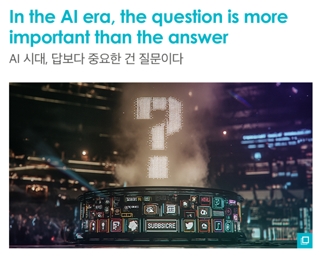 AI는 이제 더 이상 ‘실험적 도구’의 단계에 머물지 않는다. 글, 이미지, 카드뉴스까지 매일 수없이 생산되는 디지털 환경 속에서, AI는 이미 실무 현장의 핵심 파트너가 되었다. 그러나 같은 AI를 사용하더라도 결과물의 질은 크게 달라진다. 그 차이를 만드는 것은 기술 자체가 아니라, 우리가 던지는 질문의 수준이다.