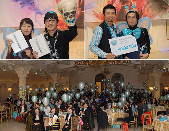 가장 중요한 시상식인 ‘Pride of PentaBreed’ Award는 임원들의 공정한 평가와 심사를 통해 한 해 동안 열심히 일한 본부와 개인에게 주는 ‘감사’와 ‘포상’의 의미를 지닌 뜻깊은 순서였습니다. 실적우수부문과 조직관리부문, 개인에게 수여하는 우수사원 부문으로 나누어졌으며, 수상자에게는 어워드로고 라벨링이 멋졌던 봄베이 사파이어 트로피와 표창장, 그리고 부상이 주어졌습니다. Big Jump Award(최대매출성장)부문에서 스마트미디어사업본부가, Big Profit. Award(최대순매출)부문에서는 통합서비스사업본부가 수상했고 우수사원에서는 경영그룹 안광진 책임과 디지털광고사업본부의 석지선선임님 각각 Best PentaBreeder로 선정되었습니다. 뒤이어 이어진 행운의 경품 추첨시간에는 캡슐 커피머신과 아이패드, 해외여행권 등 푸짐한 경품으로 많은 이들의 애를 타게 했으며, 마지막으로 박태희 대표님의 인사와 함께 소원을 담은 풍선을 날리며 송년의밤 행사를 마무리했습니다.